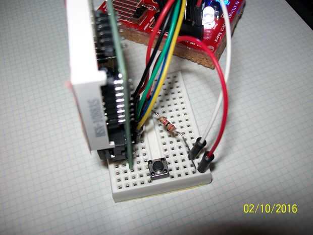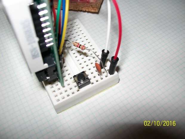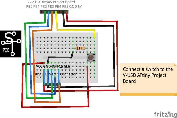 - Conecte el riel lateral opuesto del botón al pin PB4 del dispositivo ATtiny85.