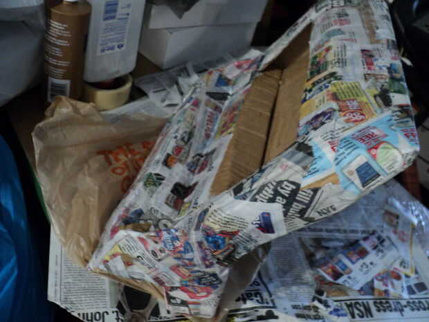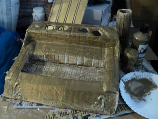 La idea general del papel maché es construir una subestructura de todo lo que tienes. Piel con trozos de periódico empapado en una solución de cola y agua. Deje que seque durante la noche y tienes un cuerpo rígido con detalles moldeados en su objeto.