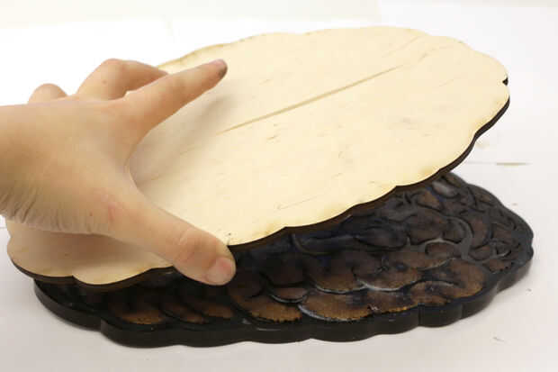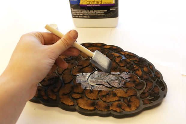 Aplique adhesivo de contacto a la parte posterior del cerebro y la parte delantera de la madera contrachapada.