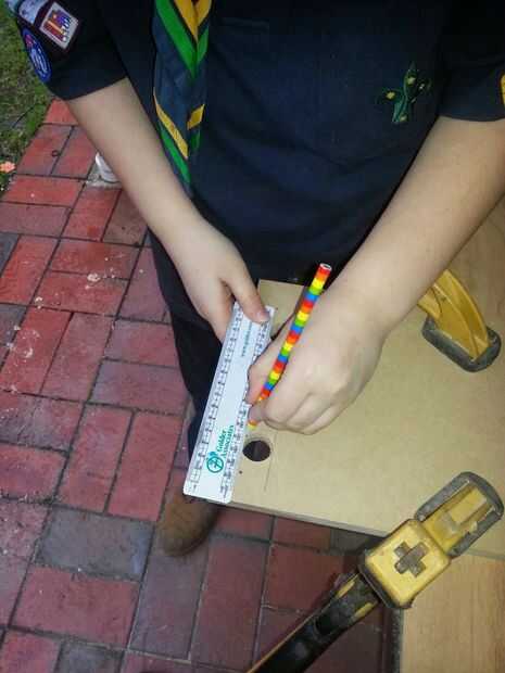 - Golpe con la regla y el lápiz una línea en la parte superior e inferior de los agujeros de 22 mm,
