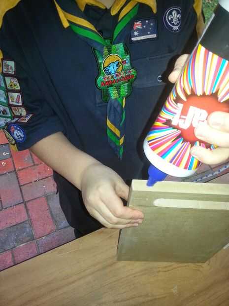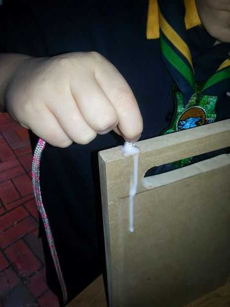 - Apriete pegamento PVA en los agujeros de 8 mm y empuje el cable para (puede envolver una pequeña sección de cinta de enmascarar sobre el final para ayudar a empujar sin agrupar para arriba),