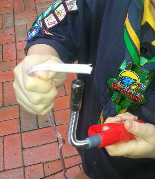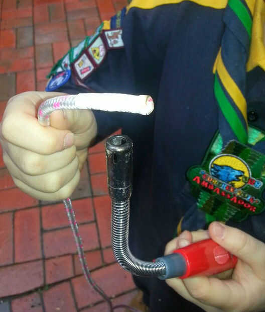 - Poner el encogimiento del calor sobre el extremo de la cuerda para y utilizando un encendedor de barbacoa hasta es apretada en el cable para y no hay sueltas fibras de cable, esto es una gran manera de mostrar cómo cuidar de las cuerdas,