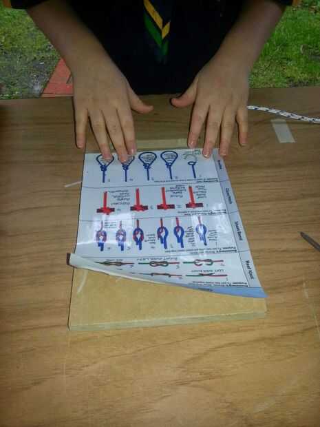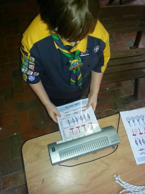 Le recomendé a pre-imprimir las hojas de instrucción de nudo como una cara estampados, preferiblemente como color; Usted puede decidir si desea que el Cub Scout para laminar las hojas de instrucciones o antes de hacer esto y dejar el corte para los Lobatos y Lobeznas.