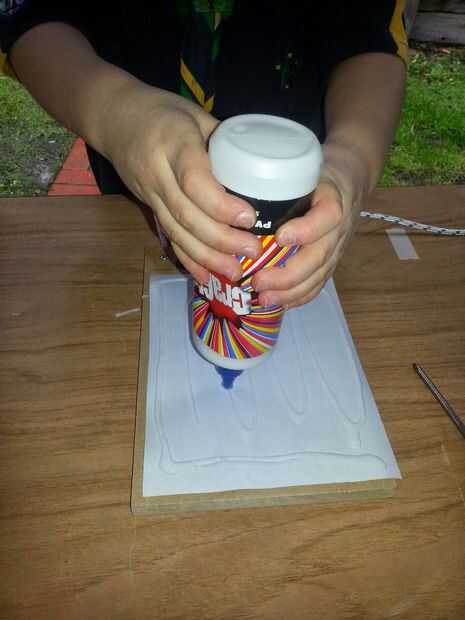 - Limpie y el exceso de pegamento PVA con un pañuelo de papel (es mejor tener un apretón más que ninguno, ya que es una señal de que el pegamento es: uniformemente extendidas, hay ningunos bolsillos de aire o parches secos y las instrucciones no es probables que levante como resultado),