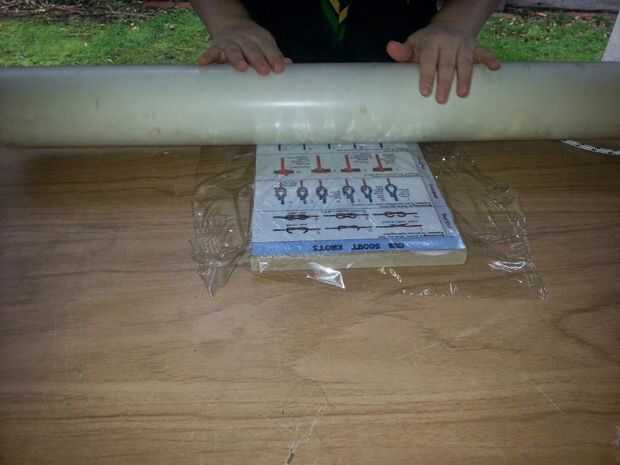 - Poner el Cub Scout nudos instructionsheet espalda con espalda con una hoja de instrucción de Nudos avanzados en una bolsa de la laminación,