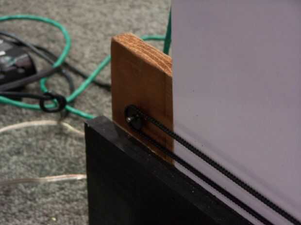 Utilicé el mismo método para montar el motor como lo hice con el componente Y. Utiliza un 8 pulgadas por bloque de 4 pulgadas, perforó un agujero de 1 y 1/4 de pulgada en él y había exprimido el motor. Luego perforó hasta el fondo de la tabla detrás de la tabla. Coloca un engranaje en el motor y fijar con masilla epoxi. Conectar el motor con cable de altavoz.