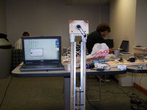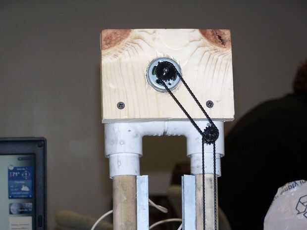 En el componente de pluma, tomar una varilla de aluminio y Masilla epoxy lo en. Entonces el otro extremo en la cadena del rodillo de epoxy. Ahora, toma una amarra y sujete todos juntos. Asegúrese de que no se la amarra en el camino del canal de aluminio... no queremos tener ningún aditiva fricción. Repita este paso otra vez, para que el componente de la pluma se sujeta en dos lugares.