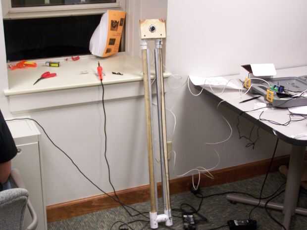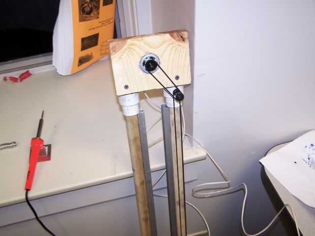 Llevaron una cuatro por cuatro pulgadas de bloque y perforó un agujero de 1 y 1/4 en él. 1 y 1/4 eran del tamaño del diámetro de mi motor. Si sobre taladro, usted puede siempre cinta el motor, para que las cuñas en su lugar, para que no resbale. El Motor debe ajustarse firmemente entre los cuatro componentes de T. Tomar el motor, cuña en el taco de madera y atornillarlos dos abajo en el tubo de PVC y barras.