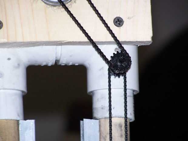 El tamaño no es necesario ser exactos porque le dan algún juego con el motor colocado en el bloque, tiene unos 5 mm de la libertad. Elegí que mi cadena vaya a la izquierda... del motor, coloqué el árbol personalizado cerca de 3 pulgadas de distancia, y luego en la parte inferior del marco Y, coloqué otro engranaje del mismo tamaño exactamente debajo de él. Esto hizo un pequeño sistema de engranaje.