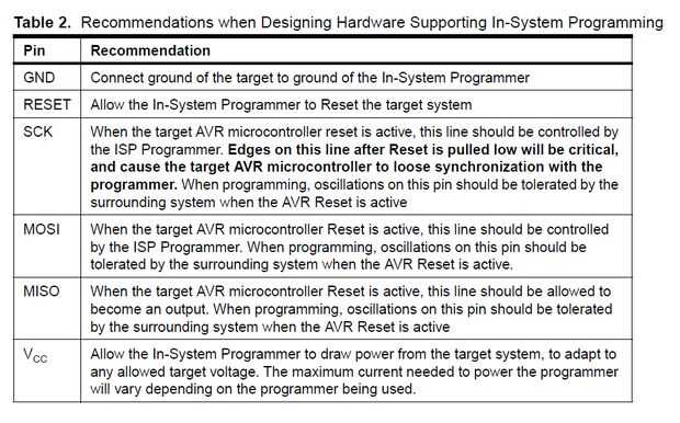 "En el sistema programación permite programación y reprogramación de cualquier Microcontrolador AVR colocado dentro del sistema final. Mediante una sencilla interfaz SPI de tres hilos, el programador en sistema comunica en serie con el Microcontrolador AVR, reprogramación de todas las memorias no volátiles en el chip." - Aplicación Nota AVR910: programación en el sistema.