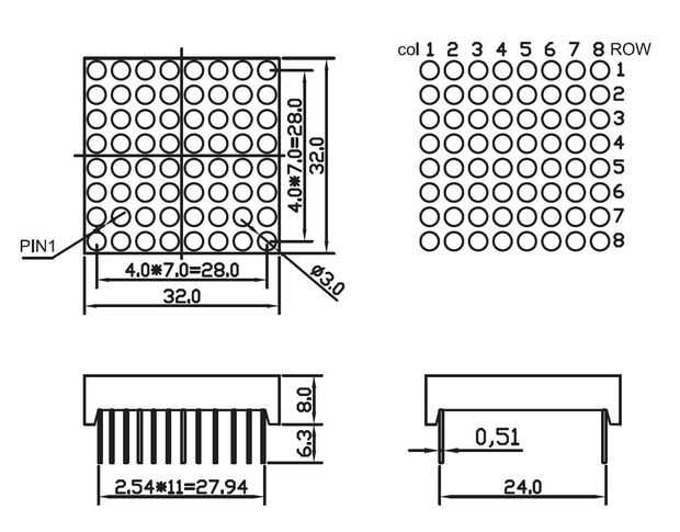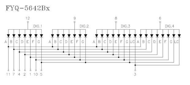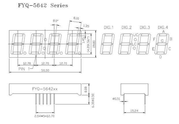 1) este diseño de esta tabla se puede utilizar con color dual LED de matriz de puntos (los tamaños grandes y pequeño) y 7 Seg x 4 Dig display como la serie FYQ-5642Bx.