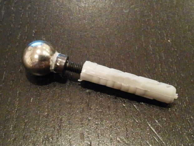 Tornillo de la bola de acero en el enchufe cortado y con mucho amor les Inserte el extremo del brazo. Una vez más, por favor tome tiempo para cortar correctamente los tapones, esto evitará dañar los brazos, pero también no recortar demasiado o usted conseguirá un Heydon conjunta. Esto es un sentimiento construido. No se preocupe usted conseguirá bueno, necesita 12 ;)