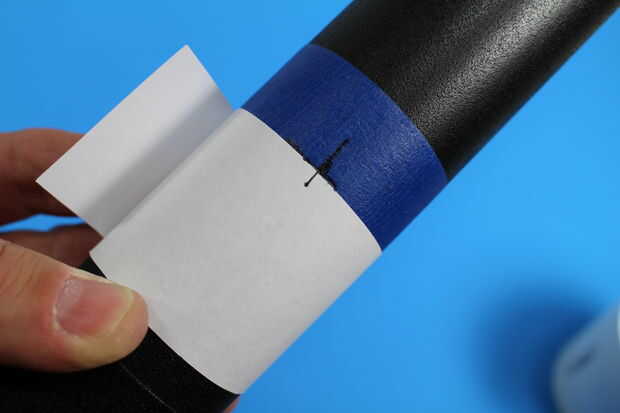 Envuelva el papel alrededor del tubo y márquelos. Uno será en el pliegue y el otro al final.