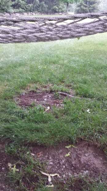 Usted puede elegir que vincularte acople para ajustar la altura de la hamaca. Sólo asegúrese de que es constante en ambos lados. Me gustaria tener mi hamaca de 2.5' de la tierra, pero puede cambiar esto en su tiempo libre si quieres.