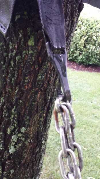 Ahora usted puede tomar la cadena que tienes, o que llegó con su hamaca, para fijar al cinturón mediante un gancho que se encuentra en el cinturón. (si no encuentra suyo, también puede utilizar un clip de mosquetón)