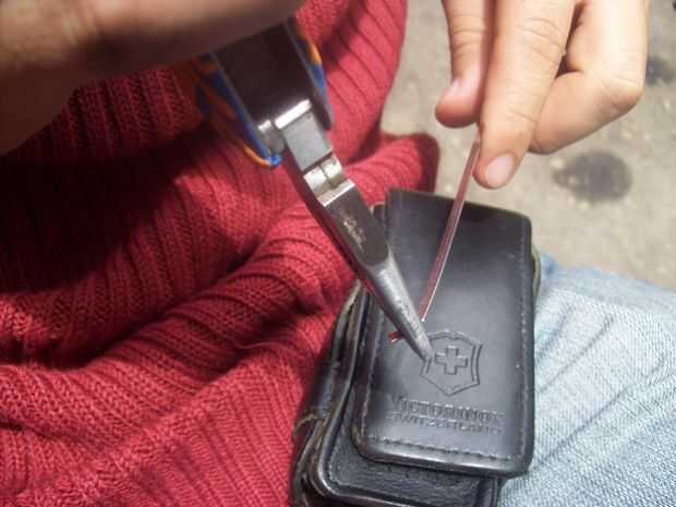 Con la ayuda de los alicates que acabo de hacer un pequeño gancho que podría enganchar el mecanismo de apertura. El otro punto o extremo de la lámina metálica, había curvado una pocas por lo que pude levantar el mecanismo.