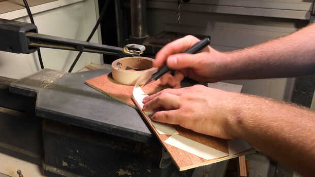 Mundo Jurásico fue increíble y me inspiró para hacerlo. Uso básico torneado, tallado y una transferencia de la imagen, pude crear esto.Materiales310 mm x madera de 310 mm x 20 mm (cedro australiano de rojo)TERPSpapel y tintacinta de enmascarartrapoHe