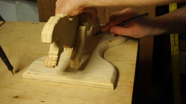 Utilizar la plantilla provista a globo ocular las partes para el dinosaurio. Yo pinzas pero me pareció que sólo poniendo peso mucho más fácil mantener las piezas hasta que el pegamento. Solo hacer un lado a la vez. Es mucho desastre tratando de pegar cinco cuatro piezas para el cuerpo a la vez. Al pegar el segundo lado, asegúrese de que las piernas grandes son en línea con los demás. Si no se pierde mucho del lugar donde se conecta a la base de apoyo. Después de que se seque luego pegar pies de Dino a la base. Puesto que esto ya es muy débil como es.