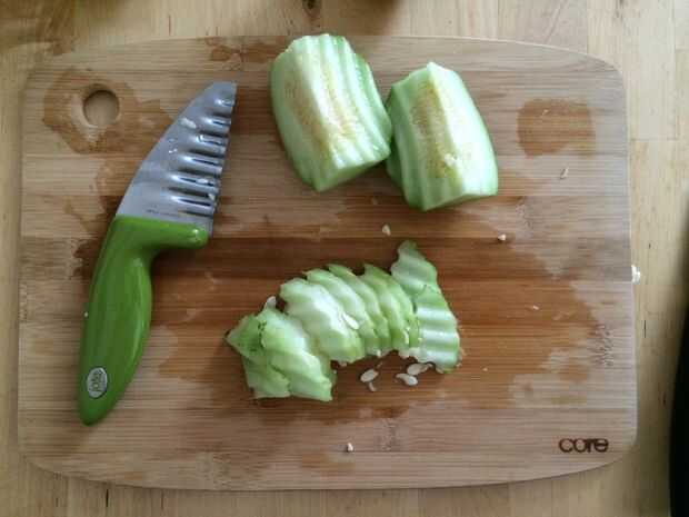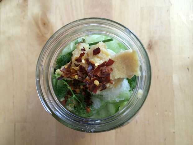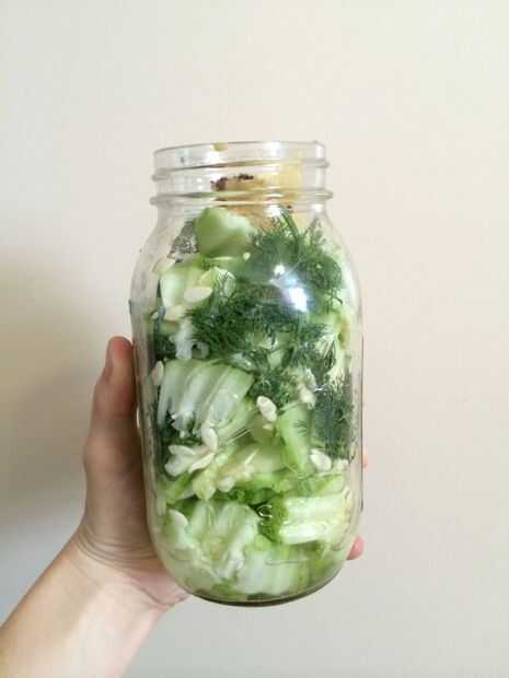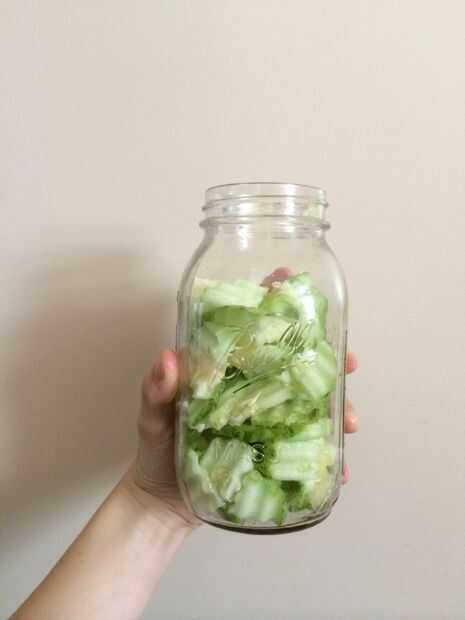 Rebanar tu verdura en salmuera sin embargo desea - lanzas, rebanadas, fritas - y añadir a la jarra.