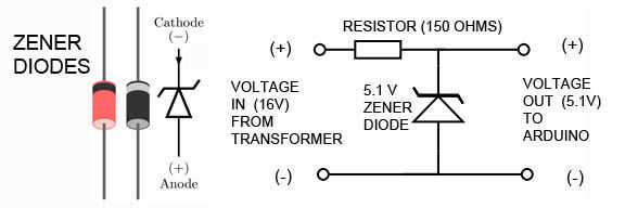 He utilizado un Diodo zener y un resistor limitador de corriente, conectado como se muestra arriba.