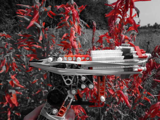 Es simple: Jux es construido para la compactación y la energía, y ambos se maneja muy bien. Cuenta con un nuevo tipo de disparador, similar a un fiador, pero un poco diferente. Tiene también una transferencia de energía nueva, diferente de mi pistola de punto y el NAR, que te no puedo mostrar, porque parece que K'nex innovación es abajo para bien; mis disculpas. Un video está por encima de su placer de la visión, y las instrucciones están aquí.