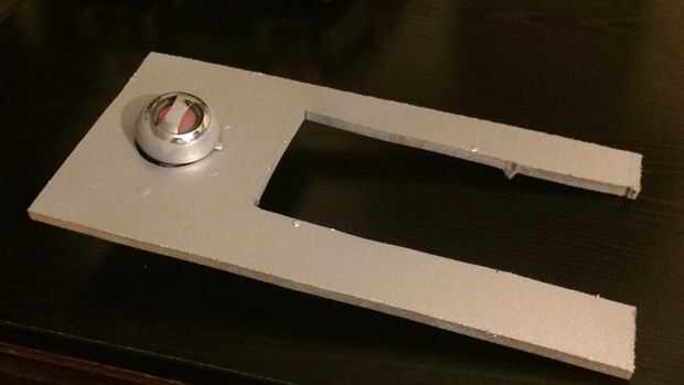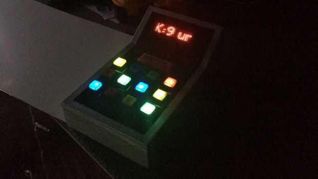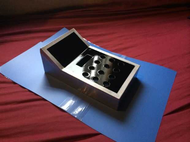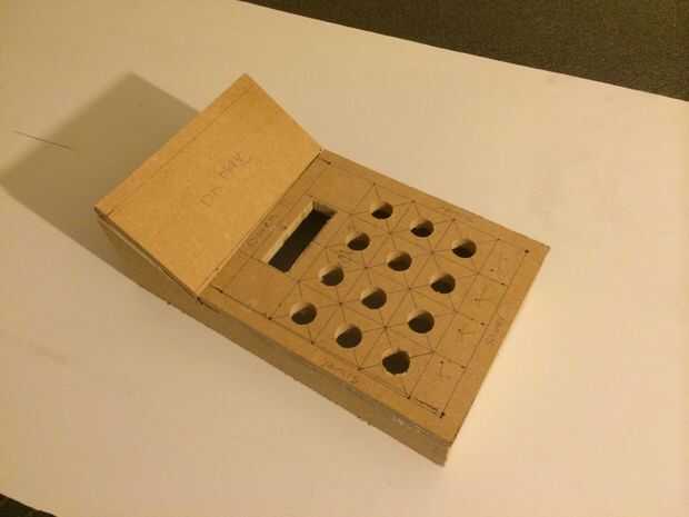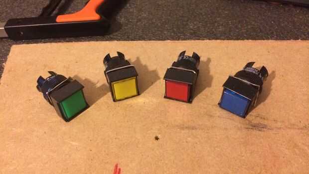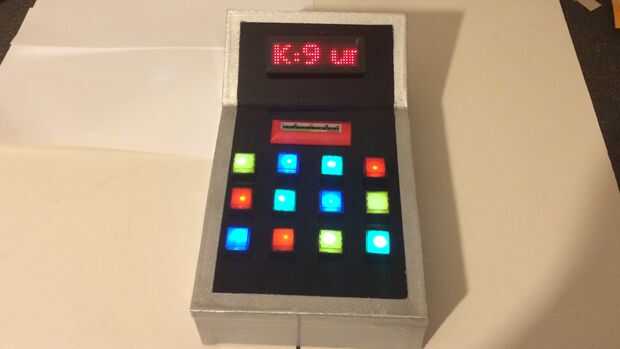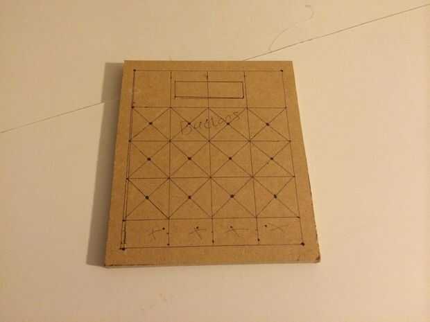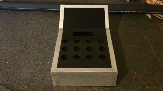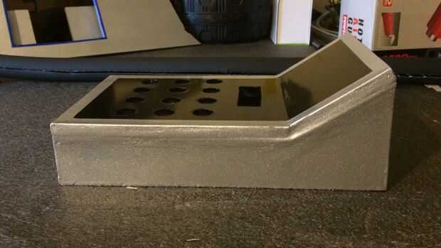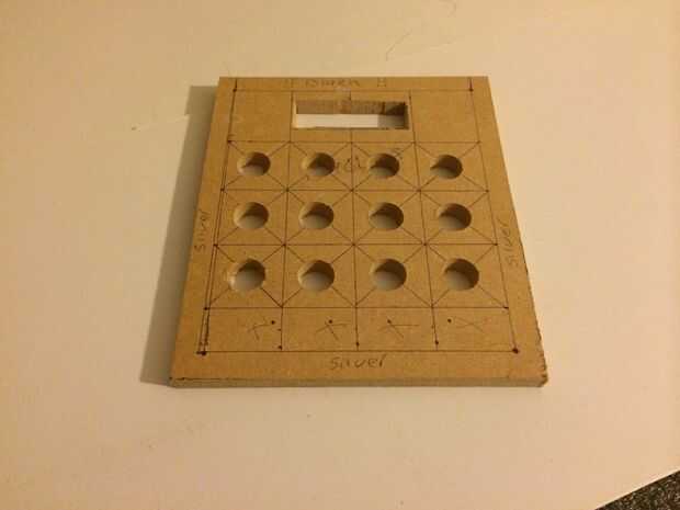 Medir y cortar MDF más melocotón para crear los lados, panel de botones y pantalla de matriz . Los lados fueron Unidos con adhesivo y a la izquierda para ajustar. El panel de botones se midió uniformemente para marcar donde los 16 botones sería lugar y el medidor de batería. El los agujeros fueron perforados. Los dos paneles restantes entonces fueron Unidos a la estructura. El panel fue imprimado, pintado y lacado. Tuve 16 cubiertas color pulsador que pelaron hacia fuera, dejando sólo los botones de iluminación en el lugar. Estos fueron colocados en el panel de control. Utilizando un conjunto barato de 20 claro luces LED, 16 de los bulbos fueron empujado hacia adentro a los alojamientos de botón y asegura con adhesivo. Luego la mete la batería fue fixe en lugar. Una hoja de PVC se midió y cortar, perforar un orificio grande y el compartimiento de la batería y cables del medidor de batería fueron alimentados a través de. Luego la hoja del PVC fue unida a la base del panel. Finalmente la pantalla de matriz de punto fue unida a la parte angular del panel y el panel de control fue fijado a un lado hasta más tarde.