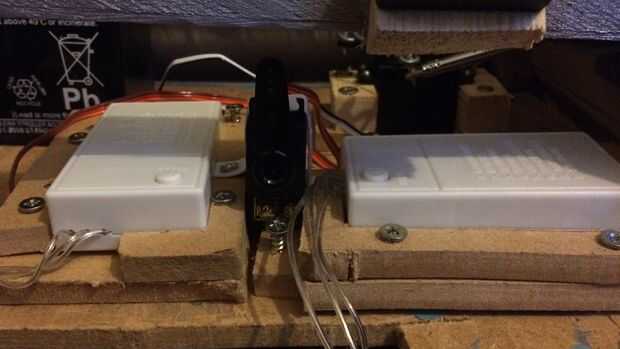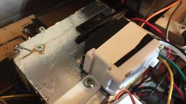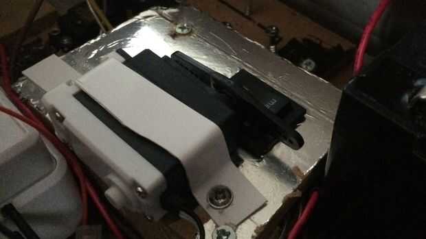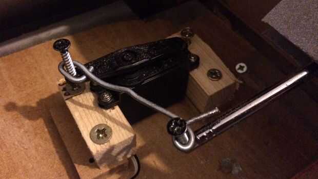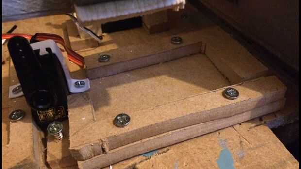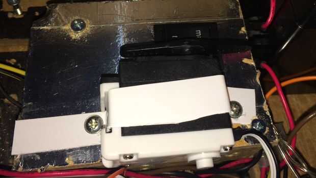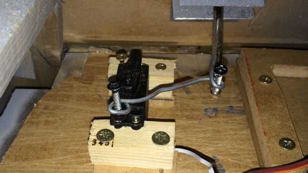 Después de trazado donde se le encuentra los servos , empecé por colocar el servo de cola. Se atornillan en el lugar y una varilla de acero fue cortada y en forma, entonces adscrito al horn del servo y de cola. Servo próxima a la cama equipada era para el panel de control e iluminación de chasis. Usando algún trozo de MDF de paz, corte y atado a la plataforma y encuentra los paquetes de baterías de la iluminación. Entonces el servo se fijó en su lugar asegurándose de que el cuerno del servo podría llegar a los botones de modo intermitente en los paquetes de baterías. El servo del siguiente fue que se ajustó por el dorsal y el cuello EL cable de iluminación. Algunos tornillos se fijaban en su lugar a casa el paquete de baterías, y el servo instalado asegurando que el cuerno del servo puede activar el botón de modo intermitente. El servo del pasado fue cabido para el interruptor que se convertirían todas las luces de encendido y apagado. Para esto se utilizó la adición de un interruptor de palanca.