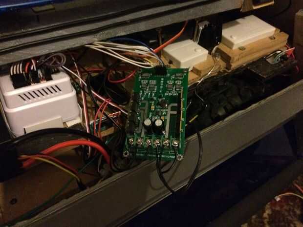 Un corte en los cables de tierra de todas las luces conectarse el interruptor basculante y fijo en su lugar bajo el cuerno del servo. Cuando se activa el servo, alternar el interruptor de encendido y apagado. Para control remoto encendido/apagado sistemas principales de K-9, un relé de control remoto 12v de canal dos interruptor fue cabido. La entrada de energía sería el de la 12v batería y los terminales de relé conectarse al microcontrolador EZ-B. Regulador del motor de puente de H con el regulador. El siguiente punto para instalar era un dos canales de 12v, el regulador motor de 10 amp con puente en H. Los dos motores estaban conectados y regulador de 5v se ajustó a los terminales de entrada de energía. En el lugar de montaje de un sensor telescópico para panel de ojo de K-9 (como el visto en los programas de televisión) que quería montar algo útil. Fui para un sensor de detección de humo y gas. Esto fue cabido detrás de una de las franjas de panel de ojo acrílico azul y conectado a los cables u instalado previamente para este propósito. Ahora todos los periféricos eléctricos fueron cabidos, que era tiempo de conectar todo y dar K-9 un cerebro. Pero antes de eso, era necesario un pequeño hack.