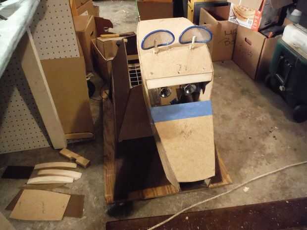 El panel de plástico que hace de sus ojos fue hecho de un pedazo grande de lexan y varias pequeñas tiras "pegadas" con MEK. La parte posterior y el área entre las tiras será pintado de color rojo después de todo cabe junto.