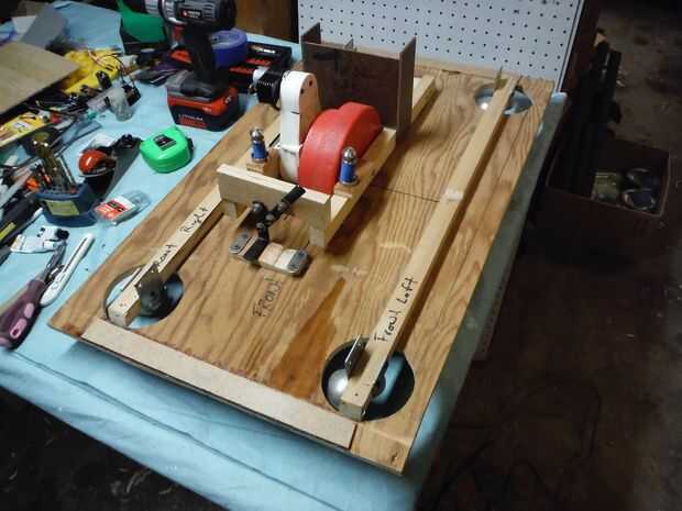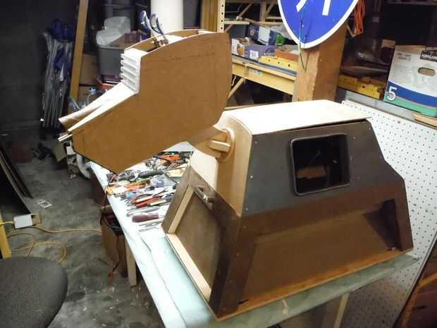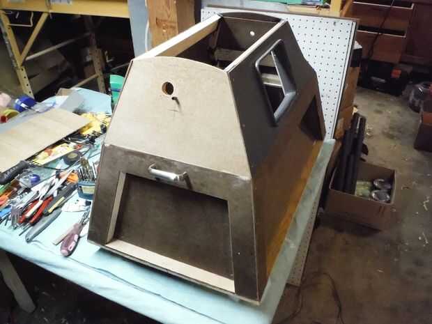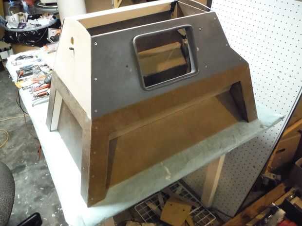 Un vistazo rápido a las partes básicas que van juntos. Si te fijas en la parte superior de la cáscara puede ver que he hecho dos tiras de Marcos y ahora la parte delantera y trasera están conectadas de forma permanente. También corté dos tiras de madera para actuar como guías en la parte delantera y trasera. Éstos se pegan a la placa base y forman la parte inferior de la parte delantera y posterior del cuerpo panel hendiduras.