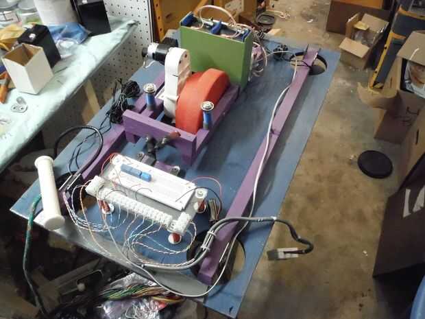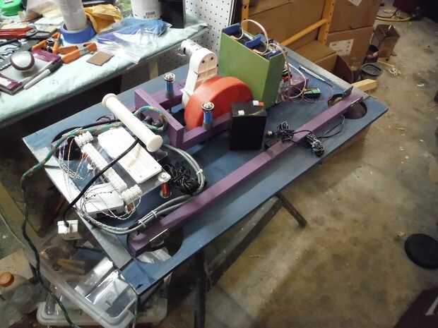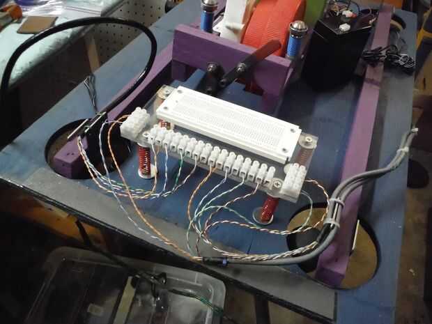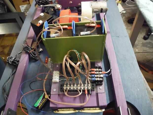 Ahora que ya tengo las pilas, es hora de conectar los relés para mover cosas. Estoy usando relés para la mayor parte de este proyecto por varias razones. En primer lugar, tengo un montón. En segundo lugar, es relativamente fácil de averiguar lo que va a activar o desactivar usando un relé. Tercero y más importante, son que el consumo de corriente para este motor necesita un control de velocidad considerable y alguna otra manera de conectar todo. Con los relés, puedo tener un pequeño voltaje ir a través de la correa y sus pequeños botones, activar el relé para conectar el motor directamente a las baterías. También estoy usando soldadura menos breadboards de relés y componentes electrónicos por lo que puedo cambiar las cosas fácilmente.
