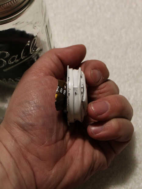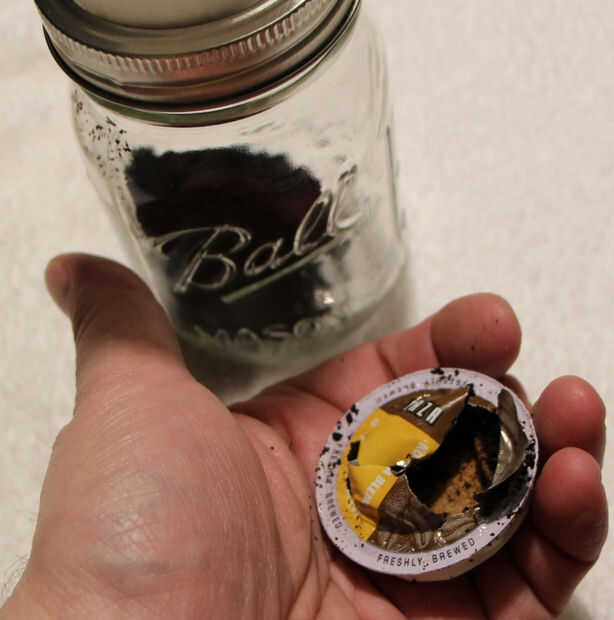 5. Bang en la espiga con su mazo de goma - tarda 2 o 3 wacks con el mazo para vaciar la taza K. Es sorprendente cuánto esfuerzo se necesita para aplastar una taza de K!