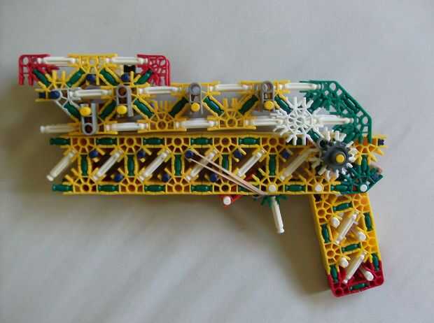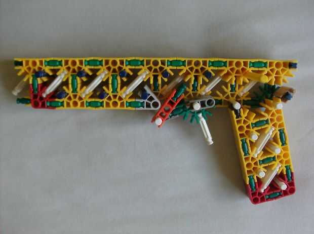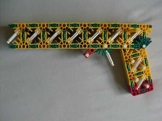HolaEstas son las instrucciones para la pistola / iPod caso que publiqué hace un tiempo.Esta arma utiliza un medio para algo gran cantidad de piezas, dependiendo de su colección de K'nex. Utiliza algunas varillas rotas, otros trozos que ves en las in