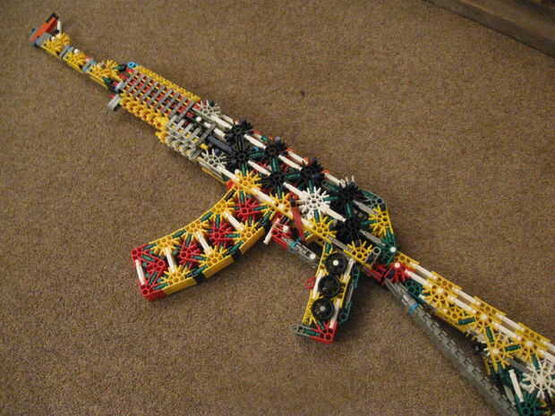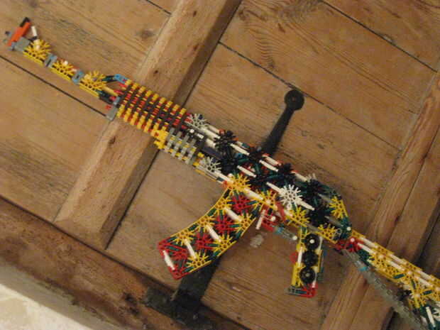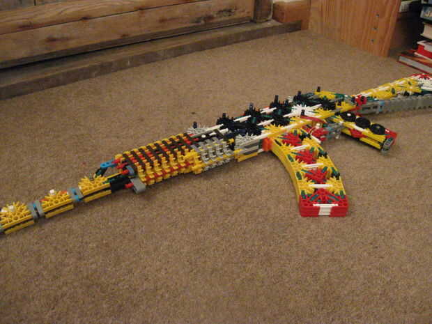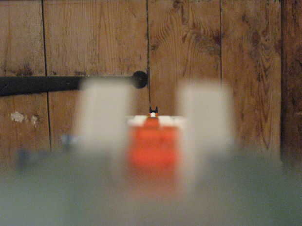 Cuenta con un compartimiento desprendible con el interruptor en el lugar correcto (en el guardamonte), pero el alza es un poco demasiado lejos hacia atrás. :( La mira delantera es casi toda la razón excepto por la falta de un punto en el medio debido a la falta de piezas pequeñas que funcionan. La pistola es exactamente la misma longitud que el verdadero negocio.