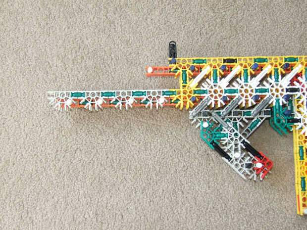 una muy fácil de construir K'NEX arma utilizando sólo piezas básicas y cortarla sorprendentemente fuerte y extremadamente potente. Esto puede ser un juguete pero es mucho más poderoso que su pistola de media así que ten cuidado con él.Tiempo: aproxim