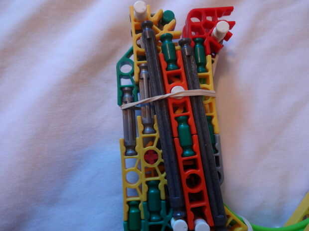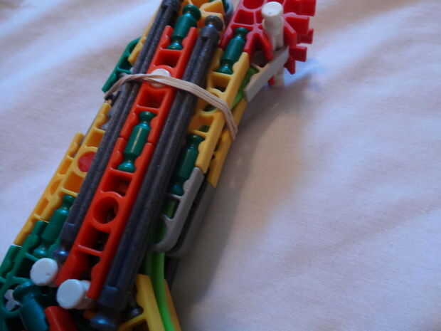 una muy fácil de construir K'NEX arma utilizando sólo piezas básicas y cortarla sorprendentemente fuerte y extremadamente potente. Esto puede ser un juguete pero es mucho más poderoso que su pistola de media así que ten cuidado con él.Tiempo: aproxim
