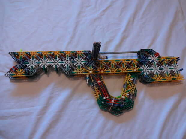 una muy fácil de construir K'NEX arma utilizando sólo piezas básicas y cortarla sorprendentemente fuerte y extremadamente potente. Esto puede ser un juguete pero es mucho más poderoso que su pistola de media así que ten cuidado con él.Tiempo: aproxim