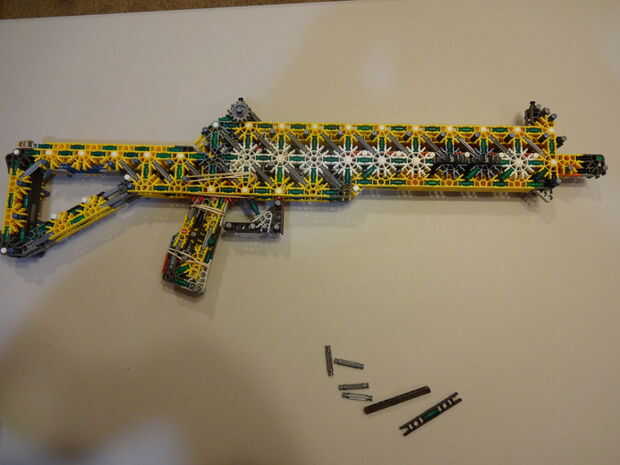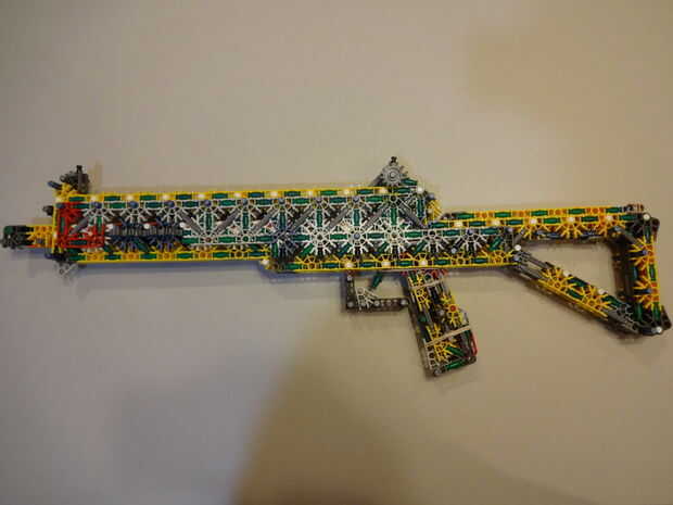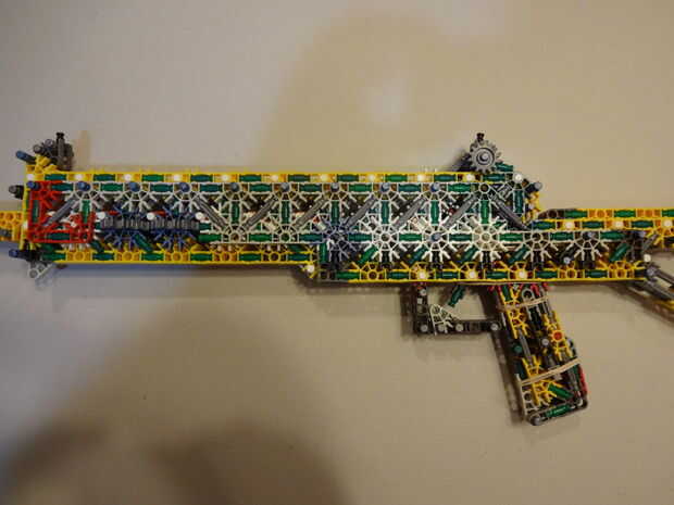 una muy fácil de construir K'NEX arma utilizando sólo piezas básicas y cortarla sorprendentemente fuerte y extremadamente potente. Esto puede ser un juguete pero es mucho más poderoso que su pistola de media así que ten cuidado con él.Tiempo: aproxim