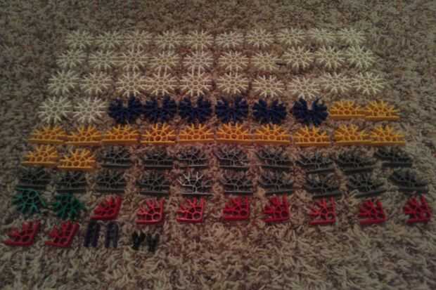lo guay es tener un cubo de K'nex? Sí, muy chulo. Dentro de sólo unos minutos usted puede tener uno en tu escritorio. Así que comencemos.Paso 1: Contar las piezas Estos son los "ingredientes" que necesita.se pueden cambiar todas las piezas para