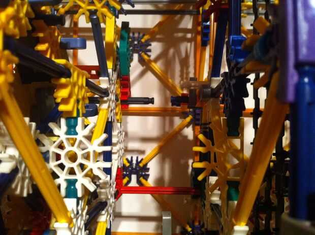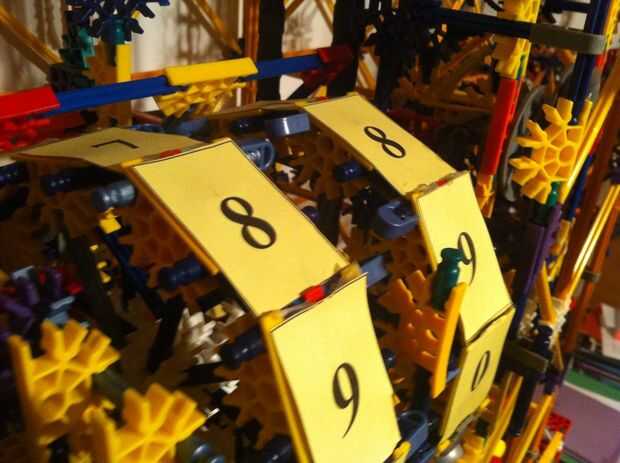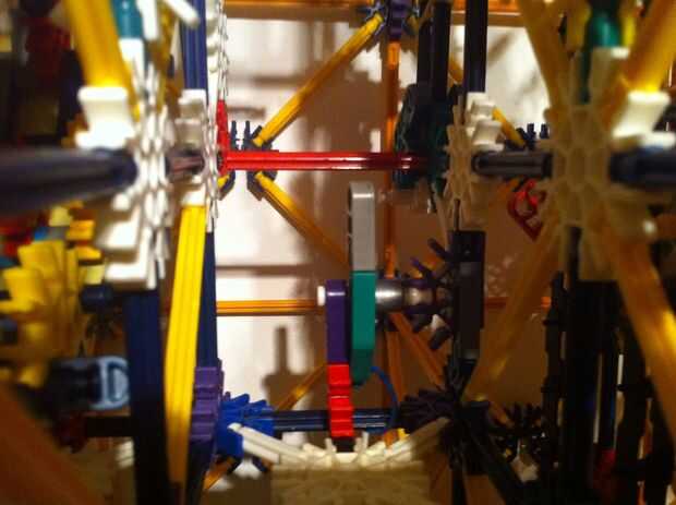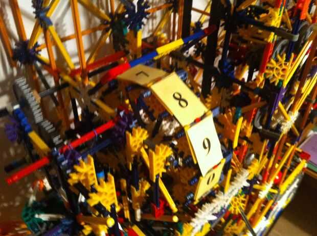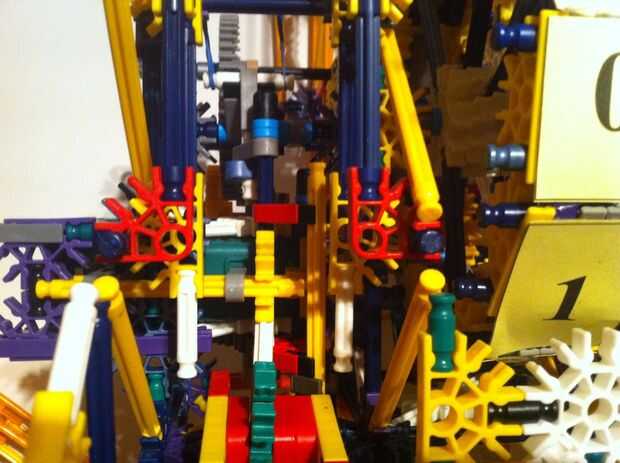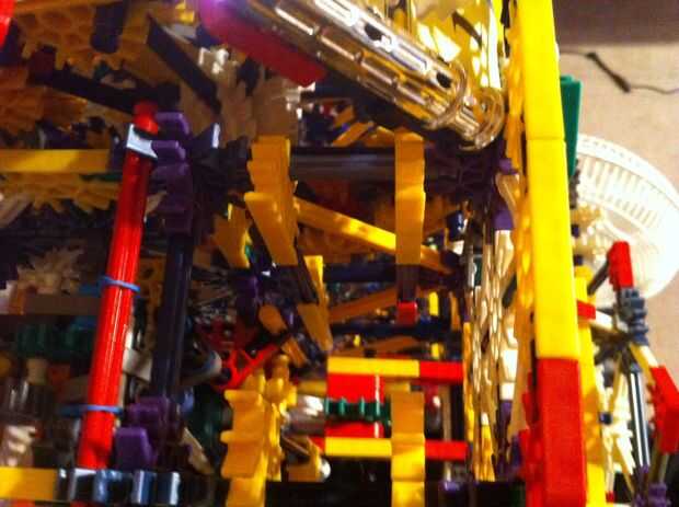 Se trata de una máquina de la diversión que se hace casi en su totalidad de K'Nex. Los componentes de K'Nex no son las bolas (que están hechas de goma hinchable), las señales y los rótulos de columna.Hay dos ranuras; uno es para el uso de los niños y