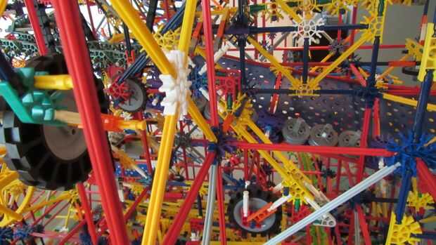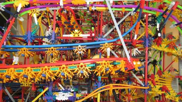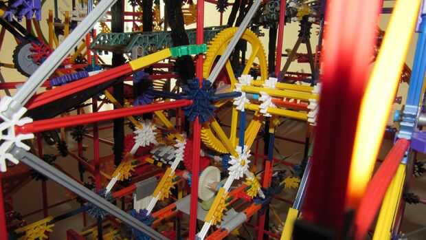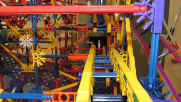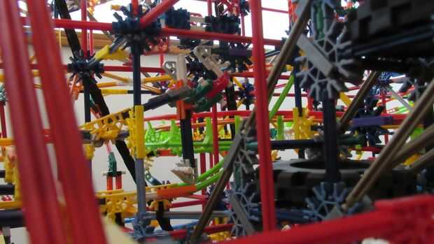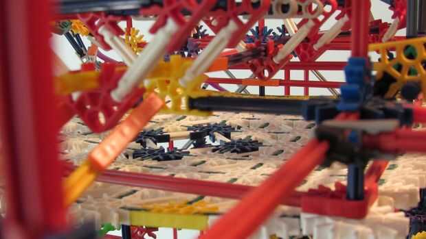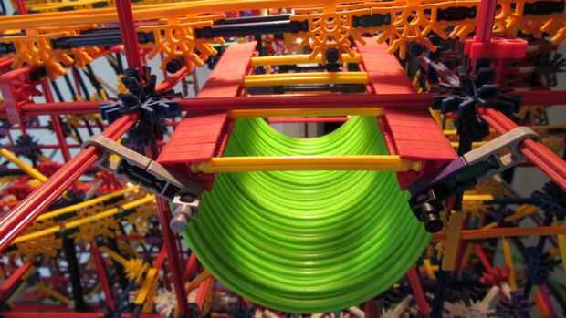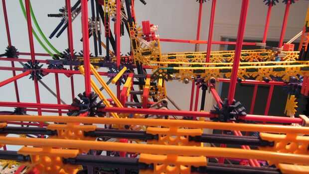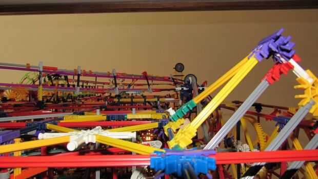 Tras 10 meses de trabajo, estamos orgullosos de presentar nuestra más grande máquina de bolas de k'nex: imposible! Este es nuestro más grande k'nex máquina de la bola siempre y cuenta con: 13 rutas, 7 ascensores divididos en 2 redes. Todo funciona con 2 motores, pero un 3 es necesario para un elemento. Tipo de es confuso cómo se dividen los ascensores, por lo que te voy a contar cómo funciona. Los elevadores de brazo superior 2 ejecuta el primer motor, y la elevación de la rueda en la red 1 y la cadena de Levante en red 2. El segundo motor funciona el ascensor de la primero y la segundo en network 2, la elevación del brazo inferior en red 1 y el separador de red 1.