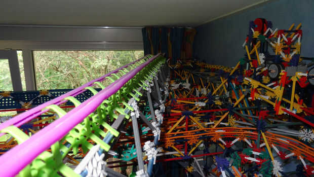 Estas 2 son mis versiones anteriores .Se trata de un remake de mi primera máquina de la bola de K'nex. Acabo de recibir más piezas por lo que he podido actualizarlo mayormente. Tiene un total de 6 rutas, cuenta con más de 7.000 piezas y soportes más