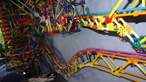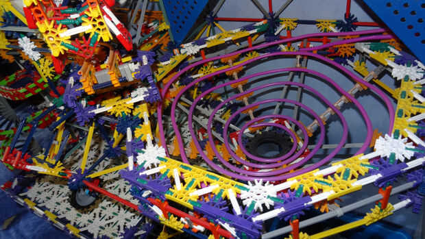 Estas 2 son mis versiones anteriores .Se trata de un remake de mi primera máquina de la bola de K'nex. Acabo de recibir más piezas por lo que he podido actualizarlo mayormente. Tiene un total de 6 rutas, cuenta con más de 7.000 piezas y soportes más