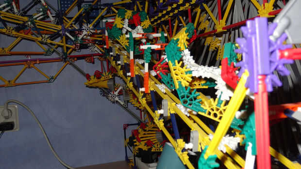 Estas 2 son mis versiones anteriores .Se trata de un remake de mi primera máquina de la bola de K'nex. Acabo de recibir más piezas por lo que he podido actualizarlo mayormente. Tiene un total de 6 rutas, cuenta con más de 7.000 piezas y soportes más