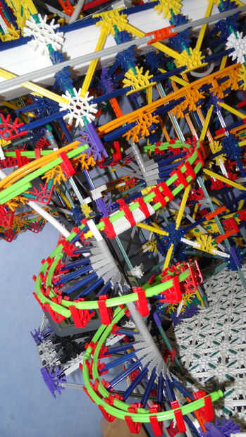 Estas 2 son mis versiones anteriores .Se trata de un remake de mi primera máquina de la bola de K'nex. Acabo de recibir más piezas por lo que he podido actualizarlo mayormente. Tiene un total de 6 rutas, cuenta con más de 7.000 piezas y soportes más