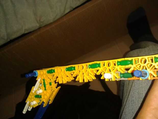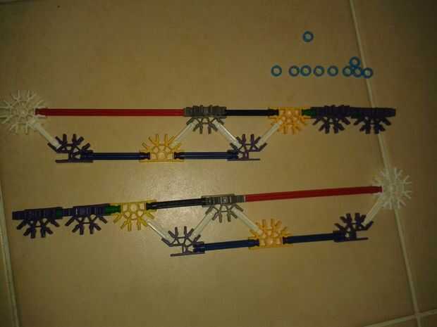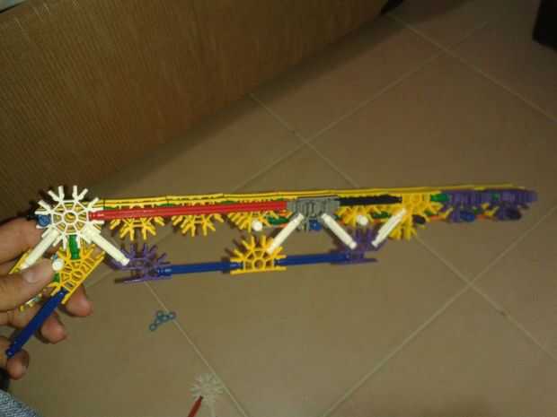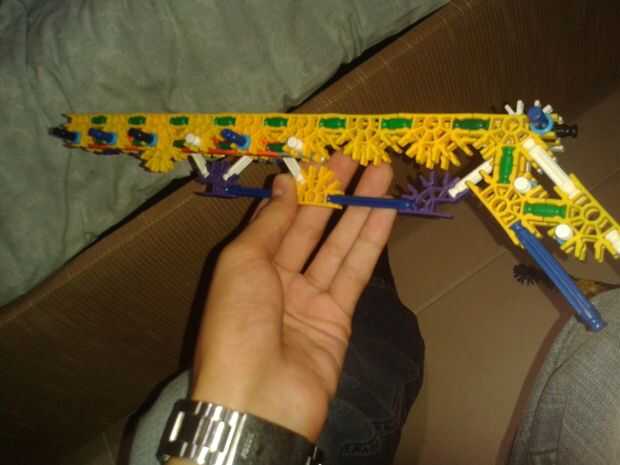 Una simple, ridículamente fuerte y potente arma de K'nex. Gatillo de verdad. Fuego no rápido. Tiempo: 35 minutosLo que usted necesita:conectores de semicírculo amarillo 4421 conectores verdes (no varillas)barras verdes 8250 barras azul26 varillas bla