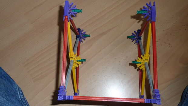 Hey!Este es mi sistema de ascensor de k'nex nuevo (y primer). Se me ocurrió esta idea, porque el profesor de física nos estaba mostrando el efecto cuando algo que es pesado (martillo) llega una luz - cosa de peso. (una bolita) Asi que me hice ese sis