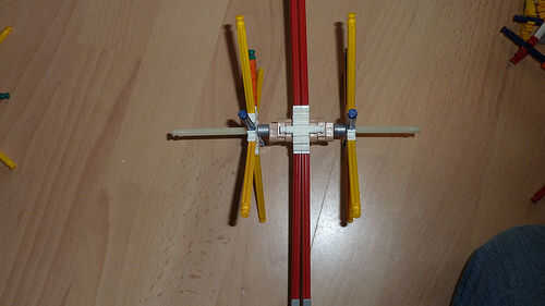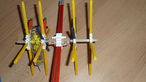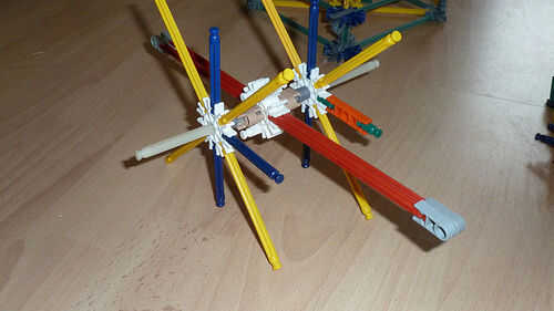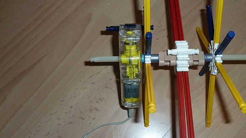 Hey!Este es mi sistema de ascensor de k'nex nuevo (y primer). Se me ocurrió esta idea, porque el profesor de física nos estaba mostrando el efecto cuando algo que es pesado (martillo) llega una luz - cosa de peso. (una bolita) Asi que me hice ese sis