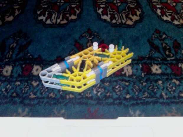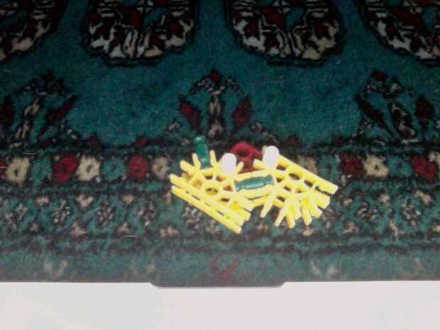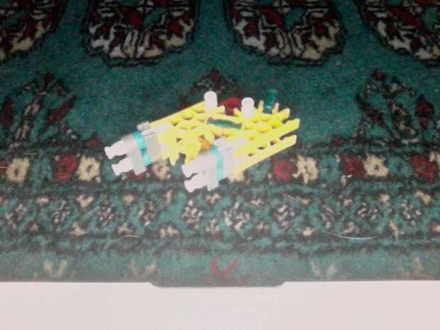 Hola, este es mi K'nex pistola, dispara balas de por lo menos 2 al mismo tiempo y tiene mucho poder. He intentado hacer la pistola más sólido de su forma original mediante el refuerzo de las piezas alrededor del gatillo con conectores escalera naranj