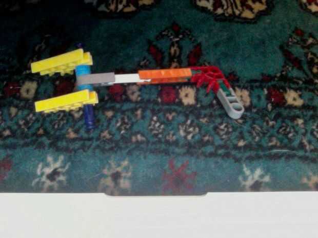 todo lo que necesita es cartulina, cintas, bandas de goma, clips y una pajita. Tiene un gatillo de trabajo con engranajes internos. Podría ser un poco complicado para un niño de 8 años y no esperar a que se hace en 5 minutos. Pero es realmente muy fá